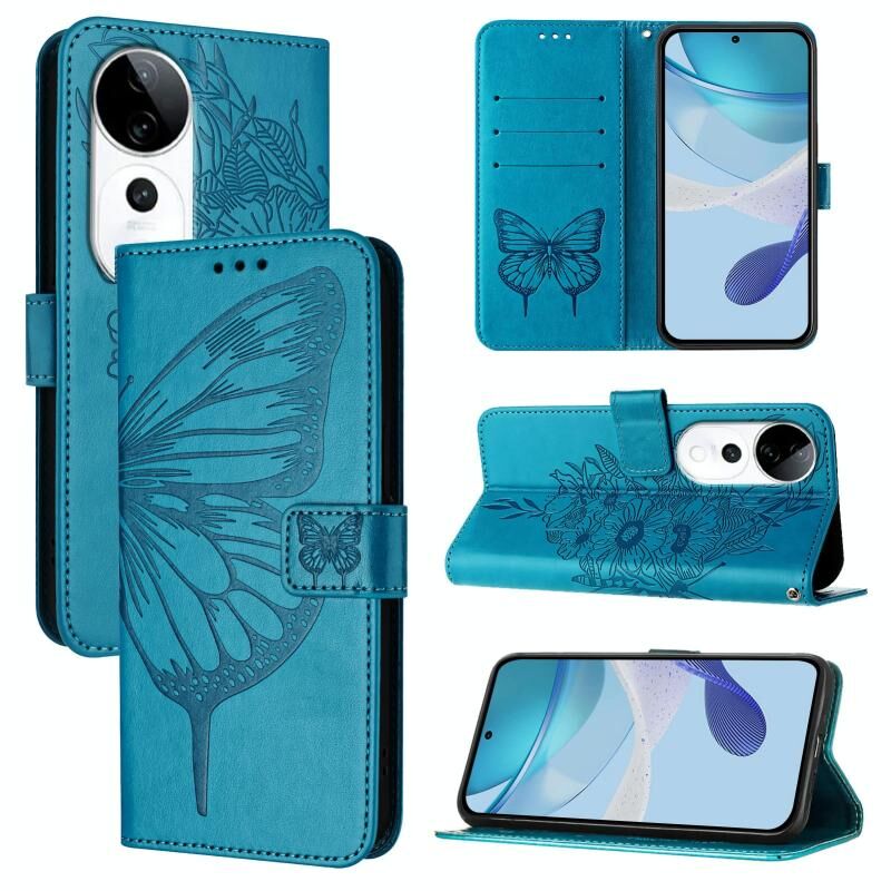 For vivo S19 Pro Embossed Butterfly Leather Phone Case(Blue)