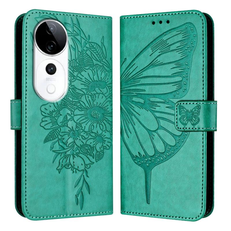 For vivo S19 Pro Embossed Butterfly Leather Phone Case(Green)