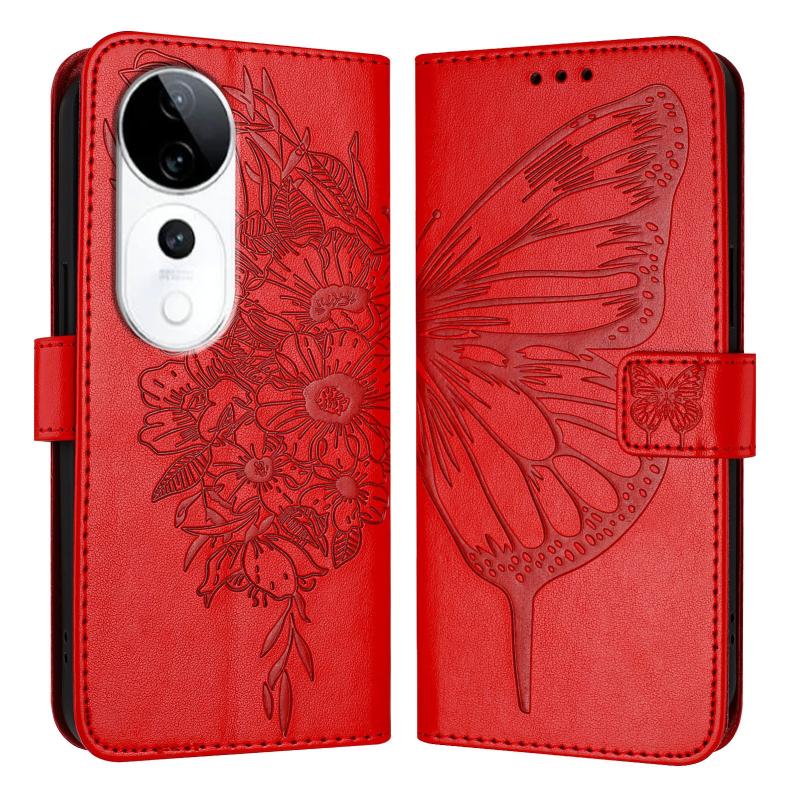 For vivo S19 Pro Embossed Butterfly Leather Phone Case(Red)
