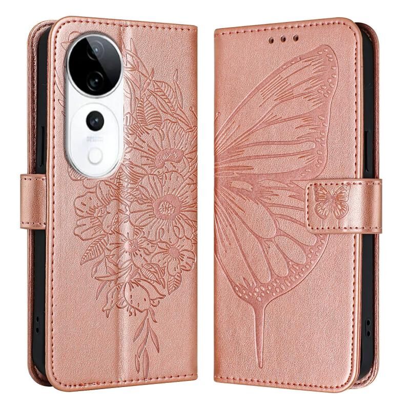 For vivo S19 Pro Embossed Butterfly Leather Phone Case(Rose Gold)