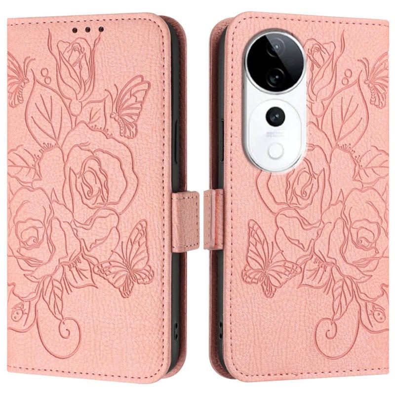 For vivo S19 Pro Embossed Rose RFID Anti-theft Leather Phone Case(Pink)