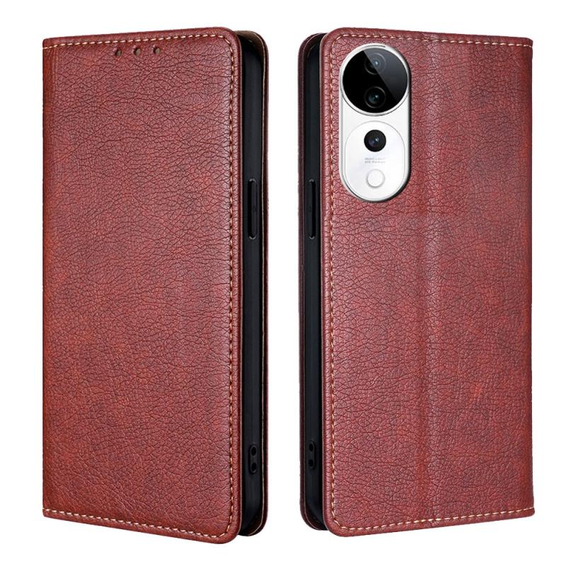 Θήκη τηλεφώνου από δέρμα με μαγνητική έλξη για vivo S19 Pro Gloss Oil Solid Color (Καφέ)