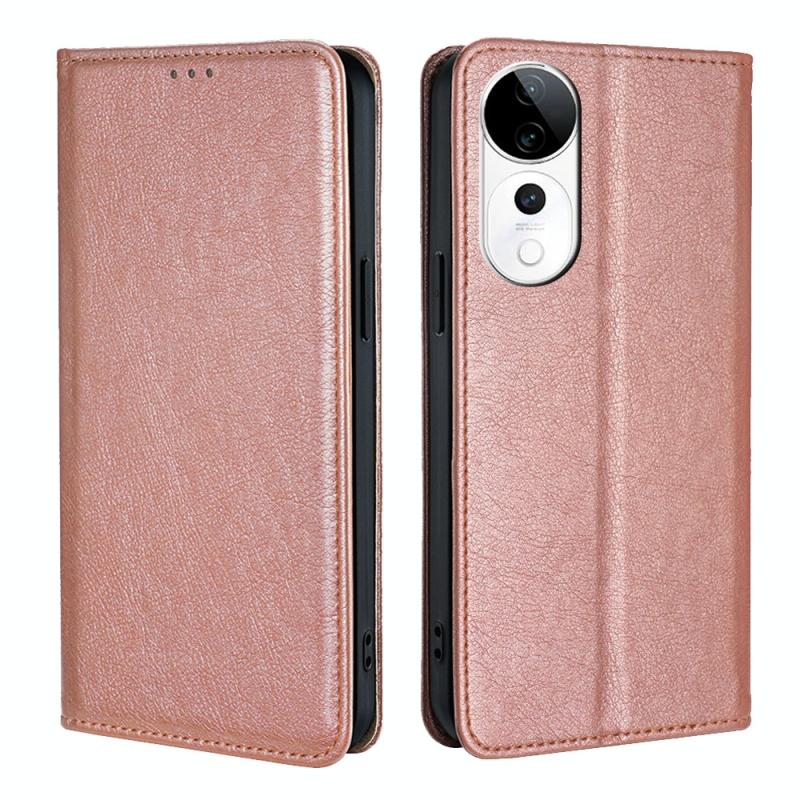 Θήκη τηλεφώνου από δέρμα με μαγνητική έλξη για vivo S19 Pro Gloss Oil Solid Color (Ροζ χρυσός)