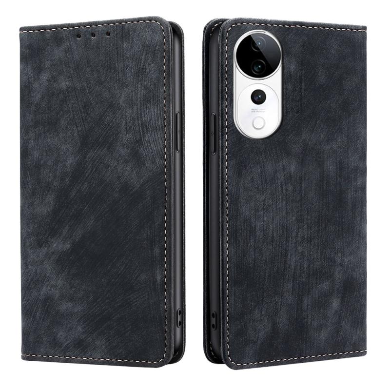 Θήκη τηλεφώνου για vivo S19 Pro RFID αντι-κλοπής με μαγνητική δερμάτινη επιφάνεια (Μαύρο)