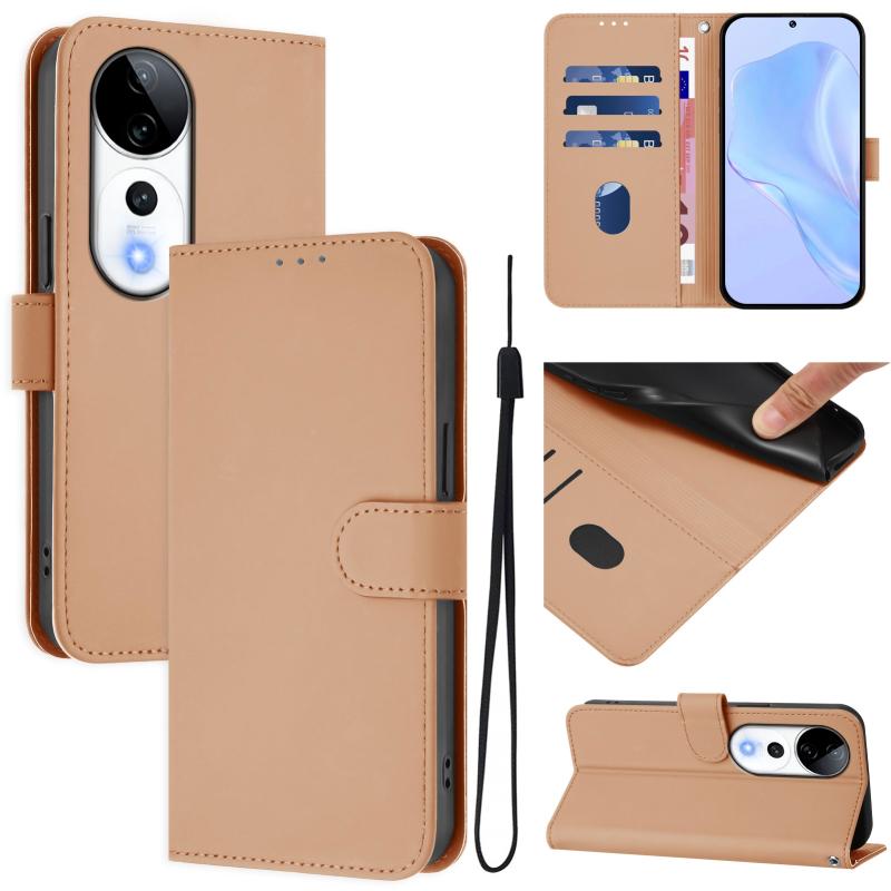 Θήκη τηλεφώνου από δέρμα με συμπαγή χρώματα για vivo S19 Pro με κορδόνι (Γυμνό)