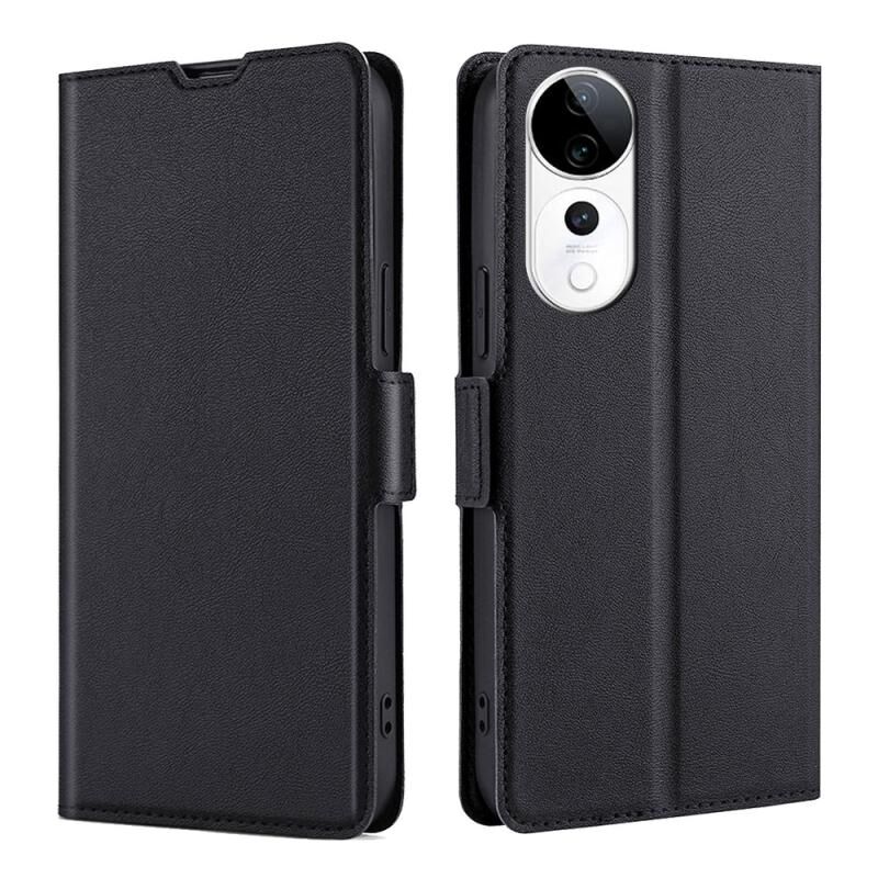 Θήκη τηλεφώνου δερμάτινη, οριζόντια, αναδιπλούμενη, με λεπτό πλαίσιο και πλευρικό άγκιστρο για vivo S19 Pro Ultra (Μαύρο)