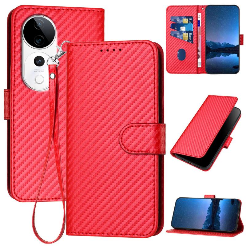 For vivo S19 Pro YX0070 Carbon Fiber Buckle Leather Phone Case with Lanyard(Red)