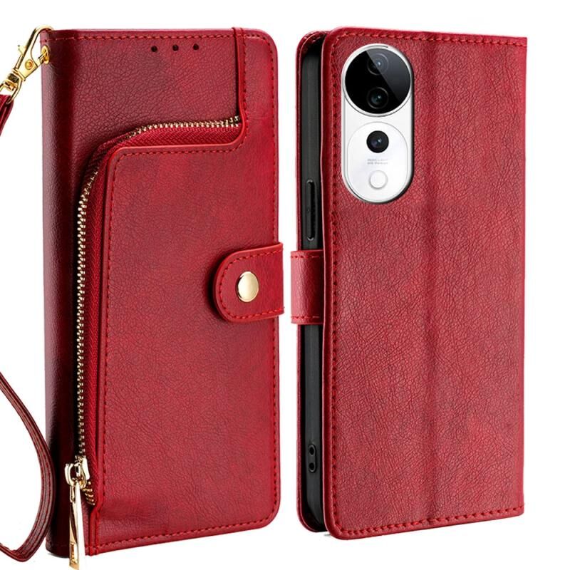 Για vivo S19 Pro φερμουάρ τσάντα δερμάτινη θήκη τηλεφώνου (κόκκινο)
