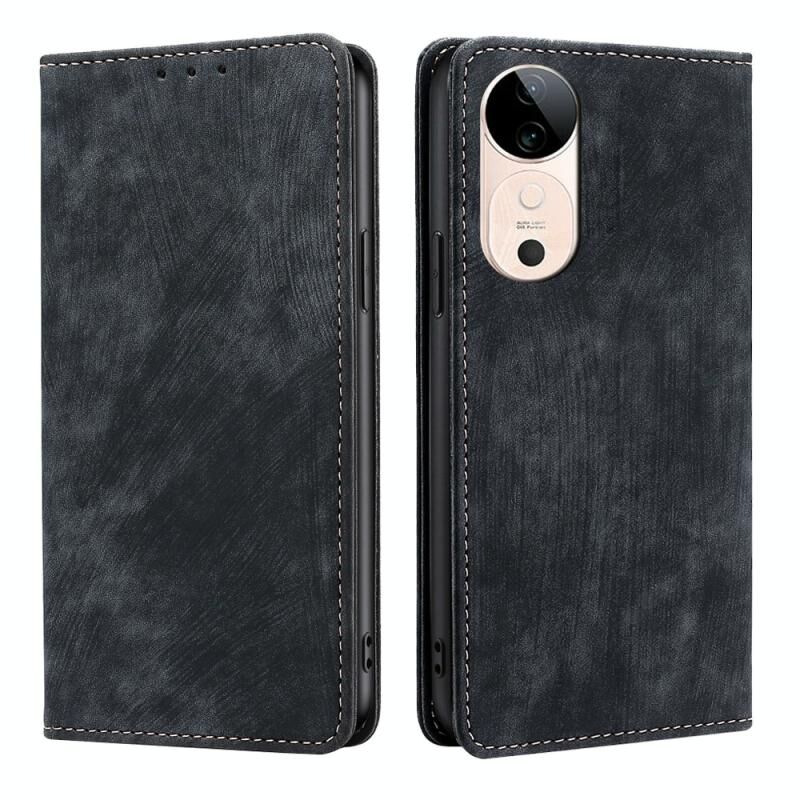 Θήκη τηλεφώνου για vivo S19 RFID αντι-κλοπής με μαγνητική δερμάτινη επιφάνεια (Μαύρο)