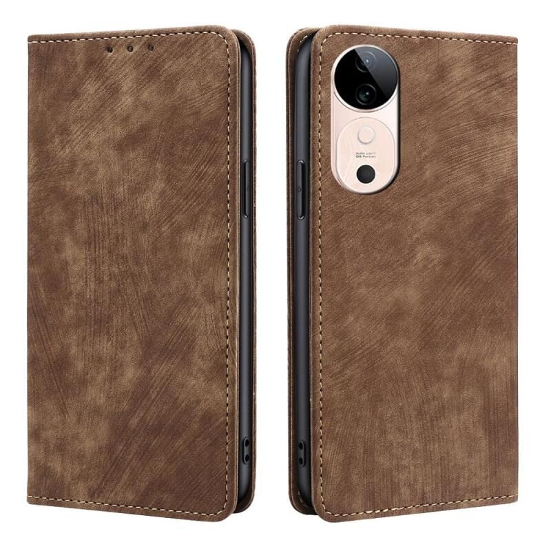 Θήκη τηλεφώνου για vivo S19 RFID αντι-κλοπής με μαγνητική δερμάτινη επιφάνεια (Καφέ)