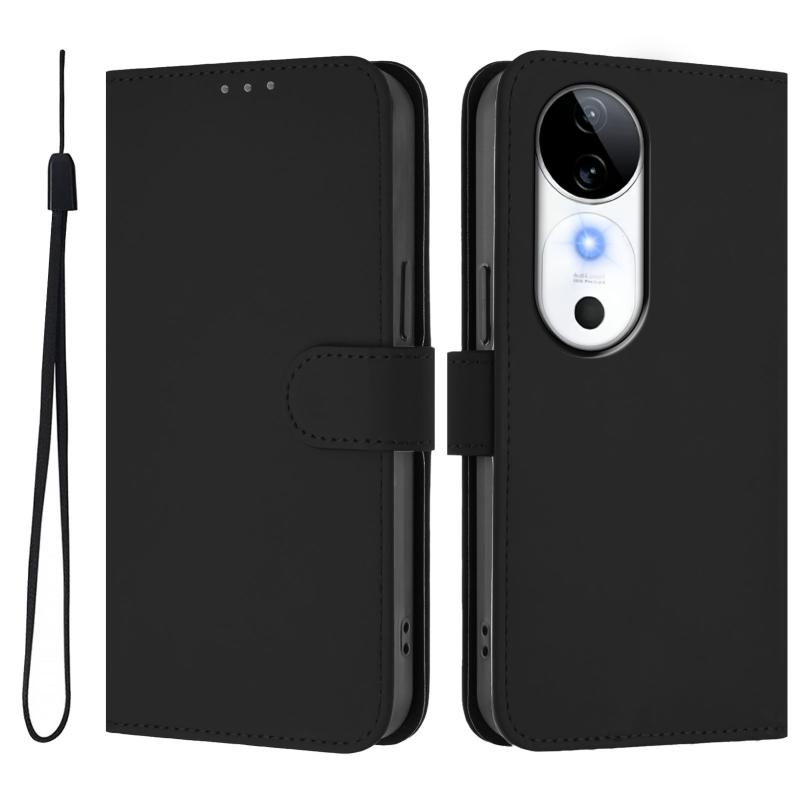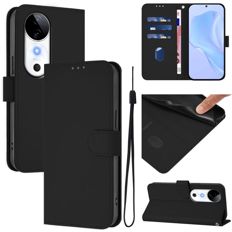 For vivo S19 Skin Feel Solid Color Leather Phone Case with Lanyard(Black)