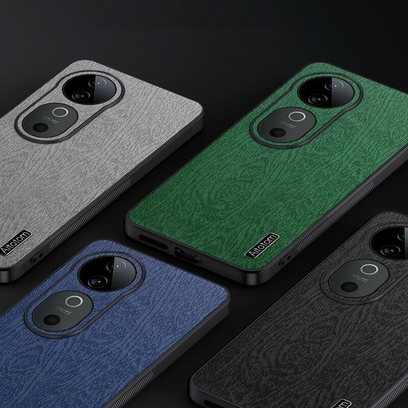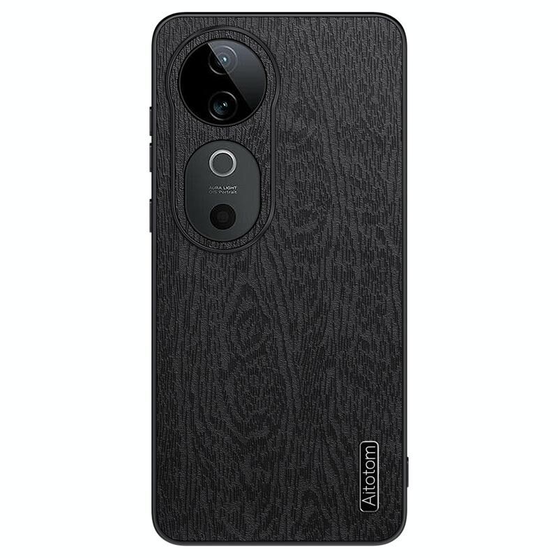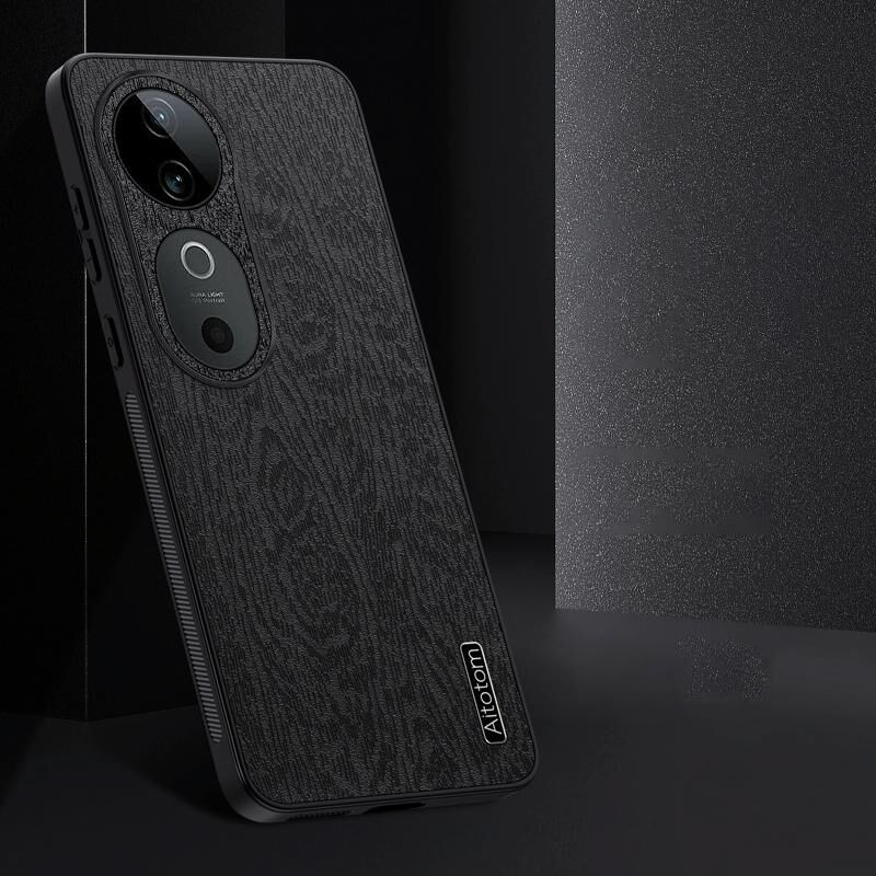 Για το vivo S19 Tree Bark δερμάτινη θήκη τηλεφώνου με αντικραδασμική προστασία (Μαύρο)