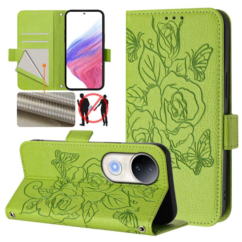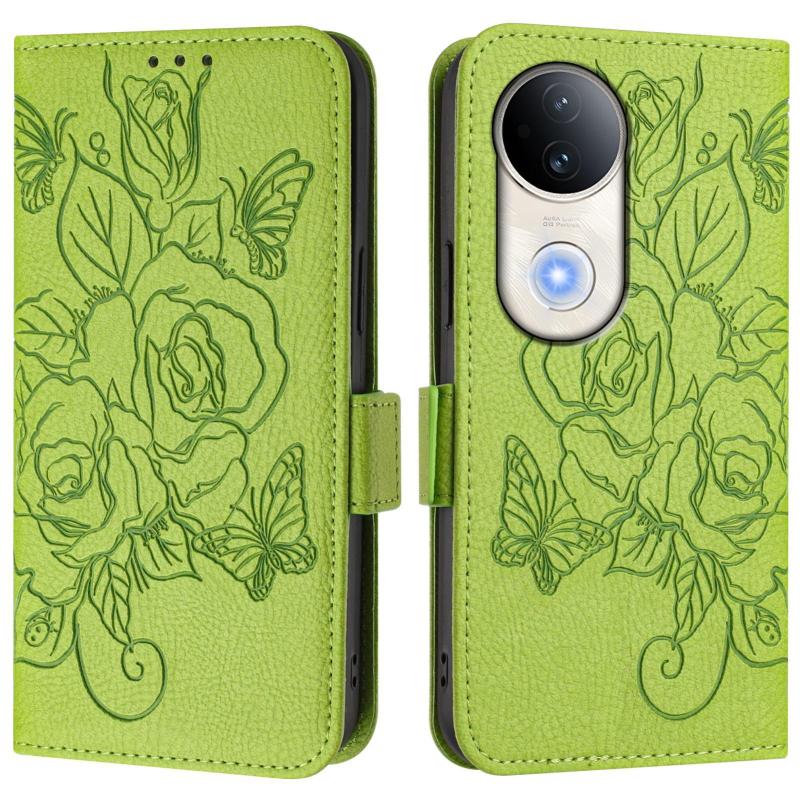 For vivo S20 5G Embossed Rose RFID Anti-theft Leather Phone Case(Green)