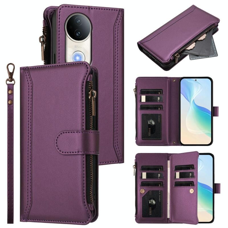 Για vivo S20 5G Μαγνητικό Κλείσιμο 9 Θήκες Κάρτας Δερμάτινη Θήκη με Φερμουάρ και Λουρί Χεριού (Σκούρο Μπλε)