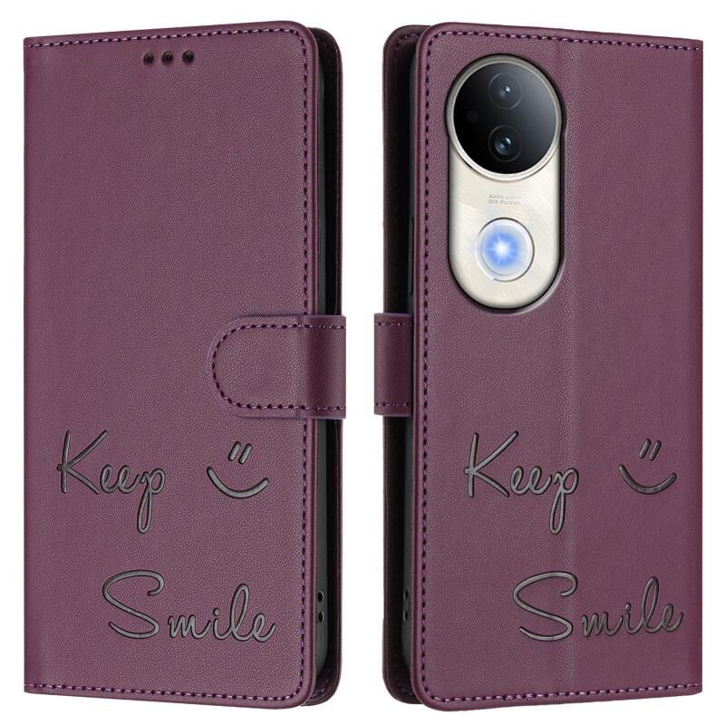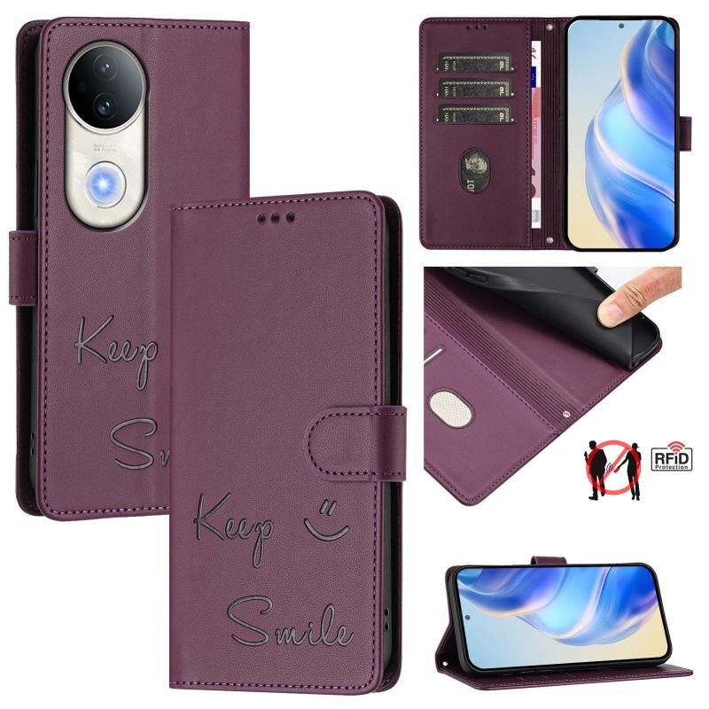 Για vivo S20 5G Χαμόγελο ανάγλυφο RFID δερμάτινη θήκη τηλεφώνου (Violet)