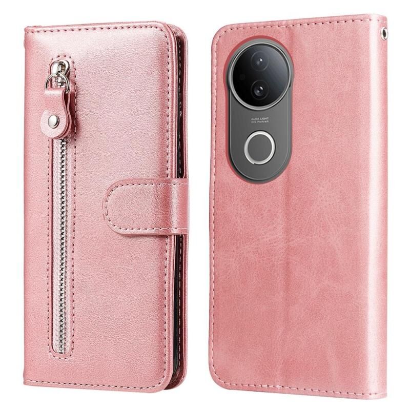 Θήκη τηλεφώνου δερμάτινη με φερμουάρ και υφή μοσχαριού για vivo S20 (Ροζ χρυσός)