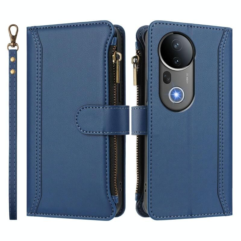 Θήκη δέρματος με μαγνητικό κλείσιμο, 9 θέσεις για κάρτες και φερμουάρ για vivo S20 Pro 5G με λουρί χειρός (Σκούρο Μπλε)