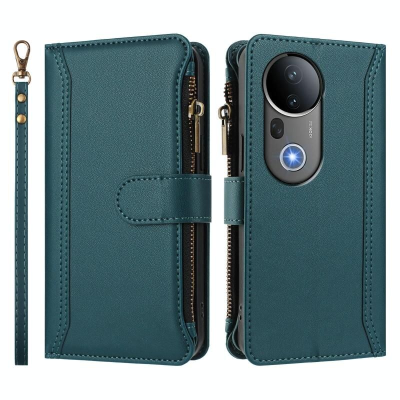 Θήκη δέρματος με μαγνητικό κλείσιμο, 9 θέσεις για κάρτες και φερμουάρ για vivo S20 Pro 5G με λουρί χειρός (Σκούρο Μπλε)