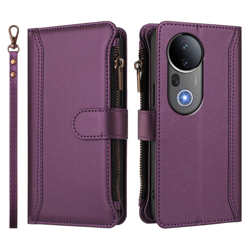 For vivo S20 Pro 5G Magnetic Closure 9 Card Slots Zipper Leather Case with Hand Strap(Purple)