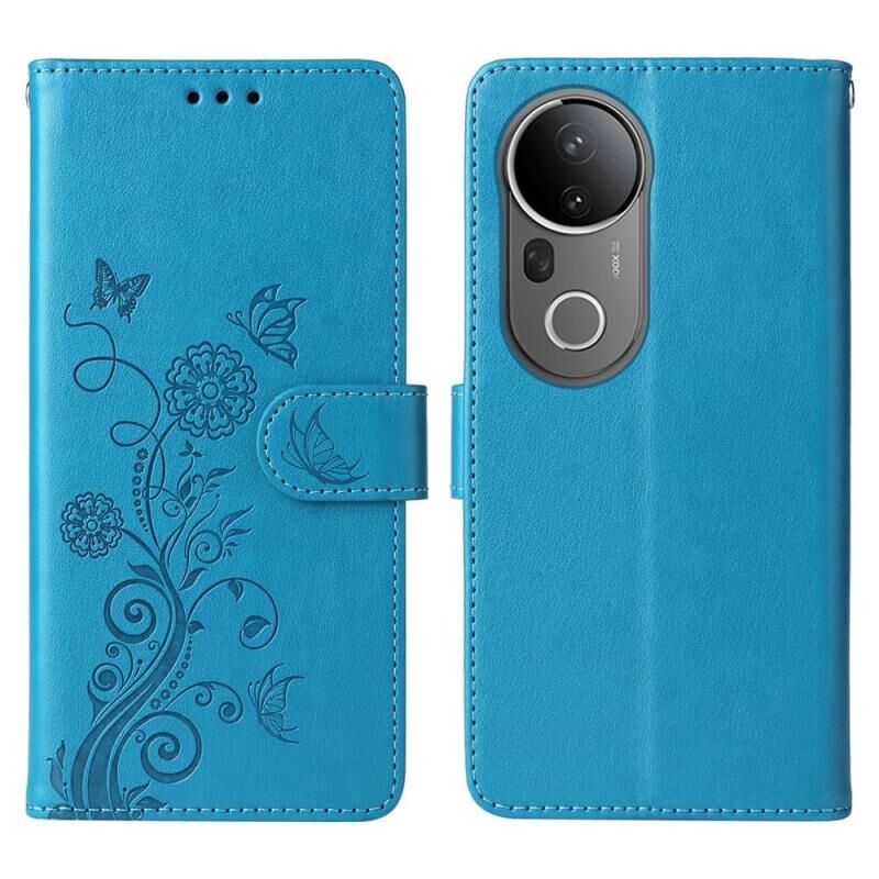 Θήκη τηλεφώνου δερμάτινη με ανάγλυφα λουλούδια και πεταλούδες για vivo S20 Pro (Χρυσό)