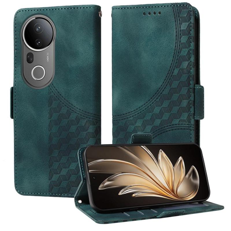For vivo S20 Pro Embossed Rhombus Starry Leather Phone Case(Green)