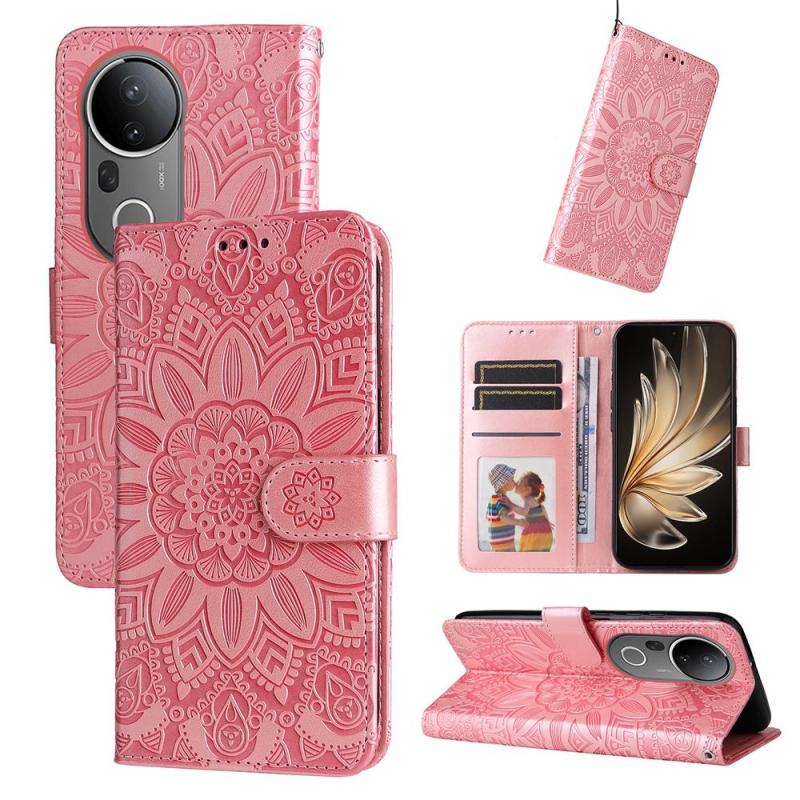 Θήκη τηλεφώνου από δέρμα με ανάγλυφο ηλίανθο για vivo S20 Pro (Κόκκινο)