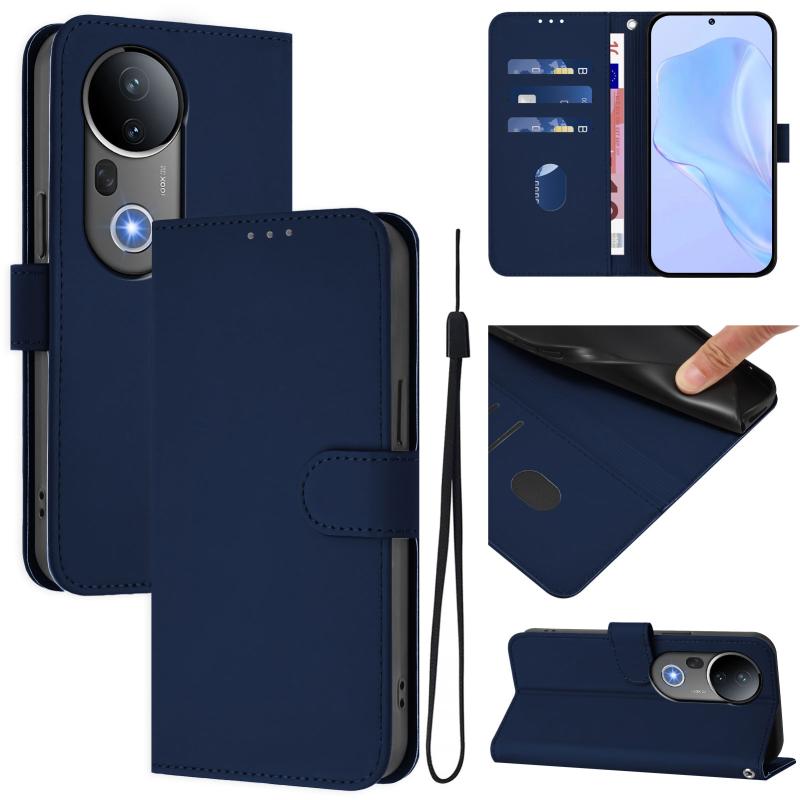 For vivo S20 Pro Skin Feel Solid Color Leather Phone Case with Lanyard(Navy Blue)