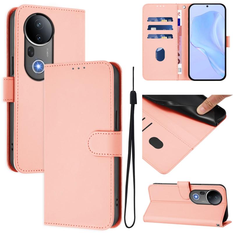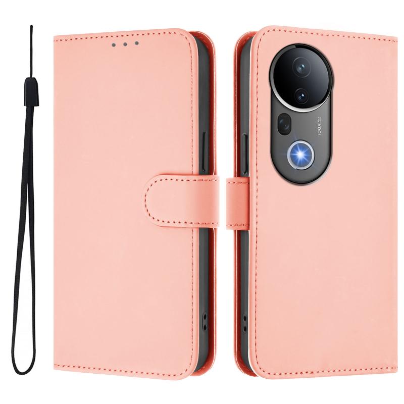 Θήκη τηλεφώνου από δέρμα με συμπαγή χρώμα για vivo S20 Pro με κορδόνι (Καφέ)