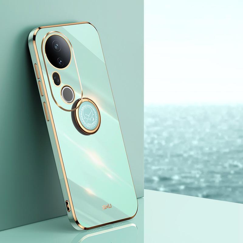 For vivo S20 Pro XINLI Straight Edge 6D Electroplate TPU Phone Case with Ring Holder(Mint Green) (XINLI)