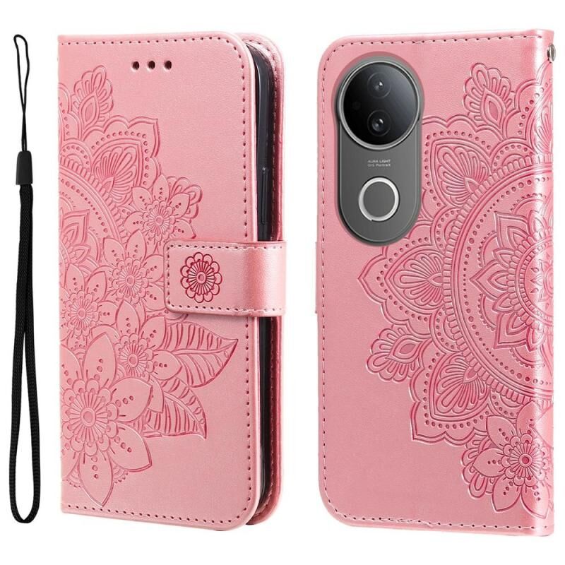 Θήκη τηλεφώνου vivo S20 με ανάγλυφο δέρμα επτά πετάλων (Ροζ χρυσός)