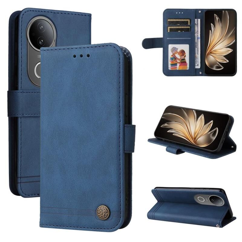 Θήκη τηλεφώνου vivo S20, αίσθηση δέρματος, σχέδιο Δέντρου Ζωής, μεταλλικό κουμπί, δερμάτινη (Μπλε)