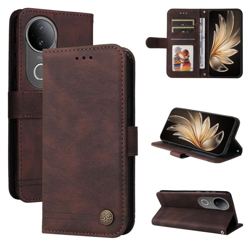 Θήκη τηλεφώνου vivo S20, αίσθηση δέρματος, σχέδιο Δέντρου Ζωής, μεταλλικό κουμπί, δερμάτινη (Καφέ)