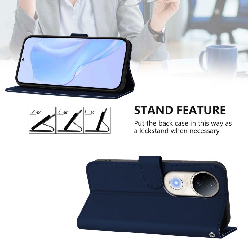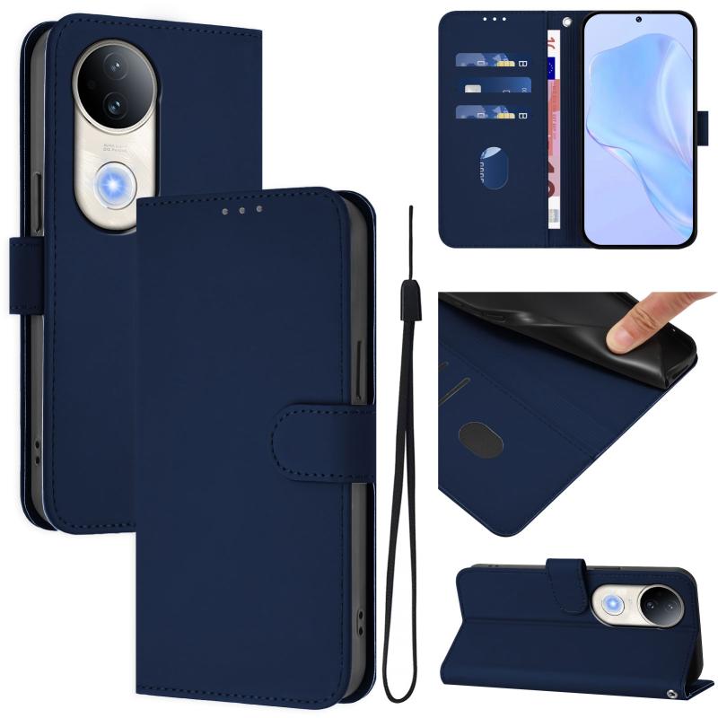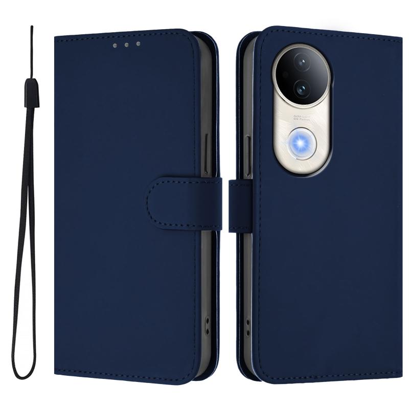 For vivo S20 Skin Feel Solid Color Leather Phone Case with Lanyard(Navy Blue)