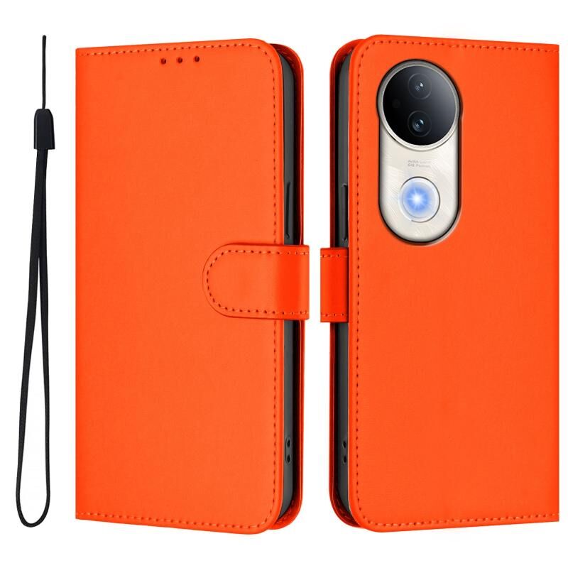 Θήκη τηλεφώνου από δέρμα με συμπαγή χρώματα και λουρί για vivo S20 (Καφέ)