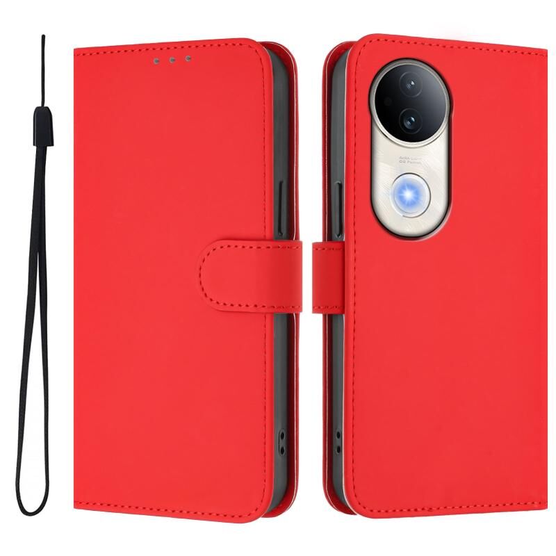 Θήκη τηλεφώνου από δέρμα με συμπαγή χρώματα και λουρί για vivo S20 (Καφέ)
