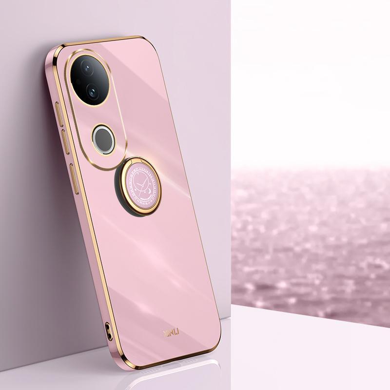 For vivo S20 XINLI Straight Edge 6D Electroplate TPU Phone Case with Ring Holder(Cherry Purple) (XINLI)