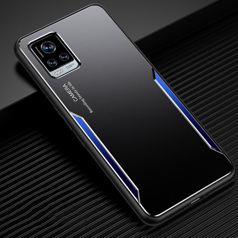 Για το vivo S7 Blade Series TPU Frame + Titanium Alloy Sand Blasting Technology Backplane + Χρώμα κράμα αλουμινίου διακοσμητικά Edge κινητό τηλέφωνο προστατευτικό κέλυφος (μαύρο + μπλε)