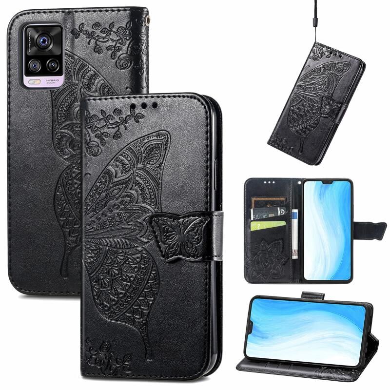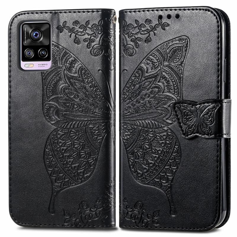 Θήκη δέρματος οριζόντιας αναδίπλωσης για vivo S7 Butterfly Love Flower Embossed με βάση & υποδοχές καρτών & πορτοφόλι & κορδόνι (Μαύρο)