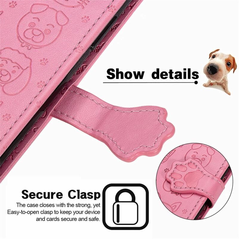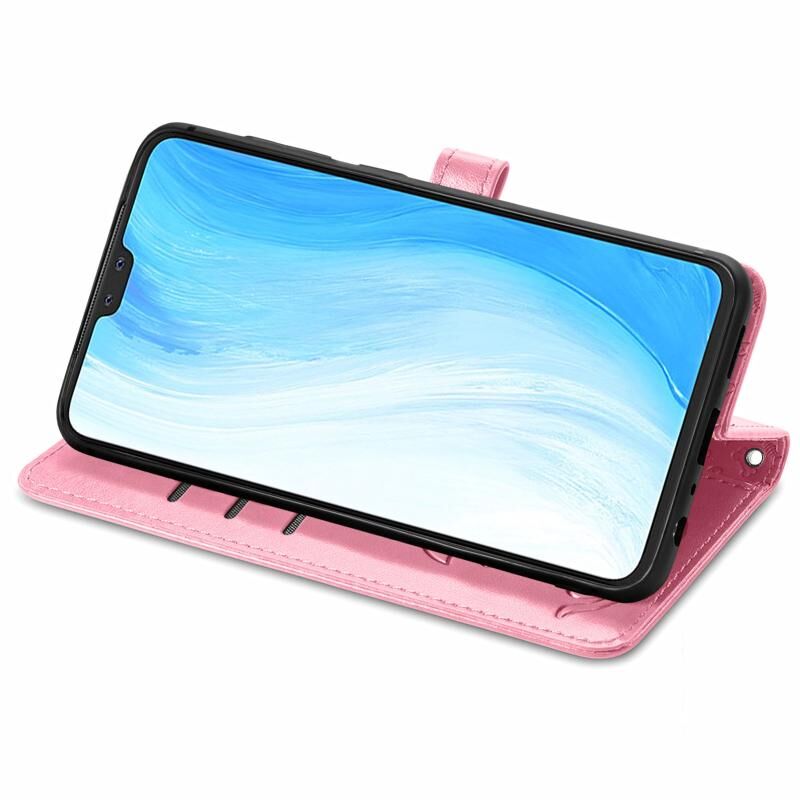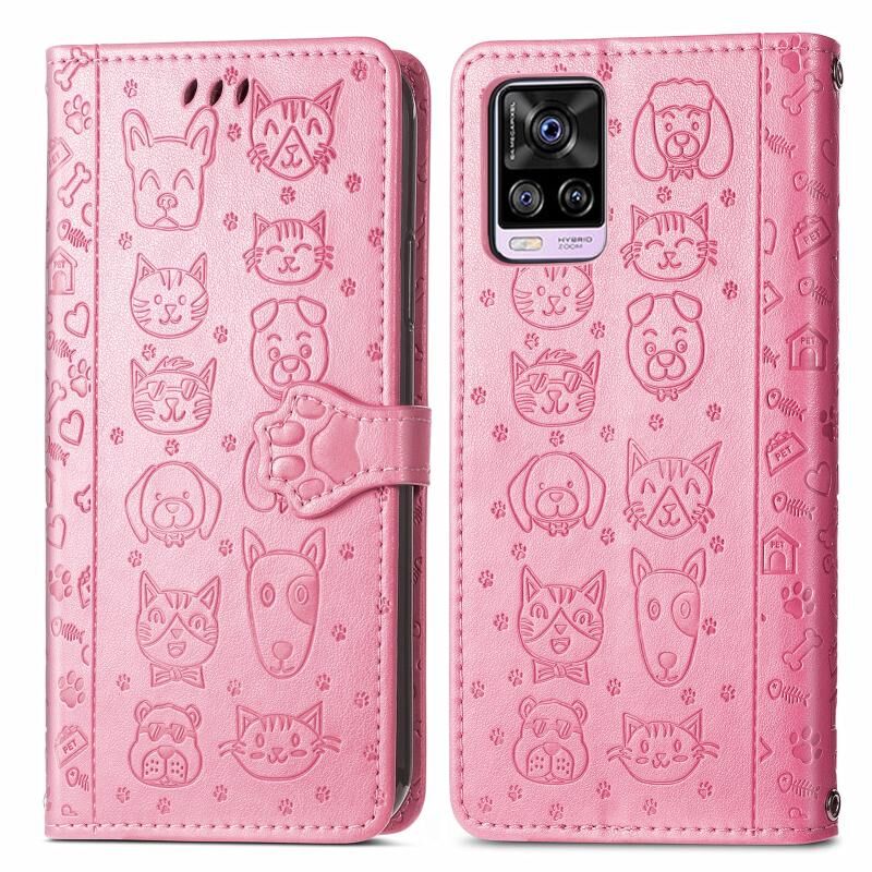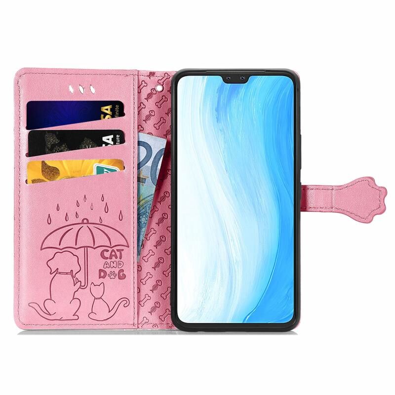 Θήκη δέρματος οριζόντιας αναδίπλωσης για vivo S7 με χαριτωμένο σχέδιο ανάγλυφου γάτας και σκύλου, με βάση & υποδοχές καρτών & πορτοφόλι & κούμπωμα καρτούν & κορδόνι (ρόζ)