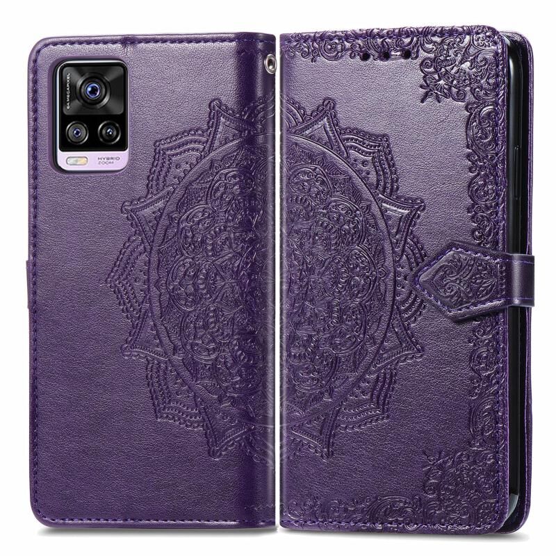 Για vivo S7 Mandala ανάγλυφο μοτίβο οριζόντια Flip δερμάτινη θήκη με κάτοχο & υποδοχές για κάρτες & πορτοφόλι & κορδόνι (μωβ)
