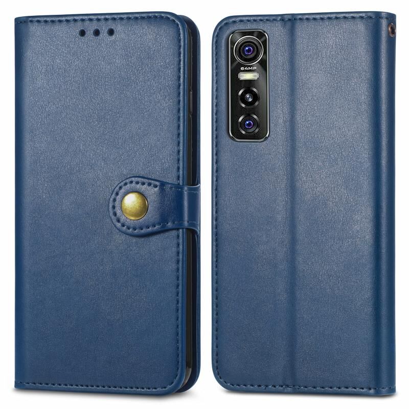 Για vivo S7e Αμιγές χρώμα δέρμα πόρπη υπόθεση τηλεφώνου (μπλε)