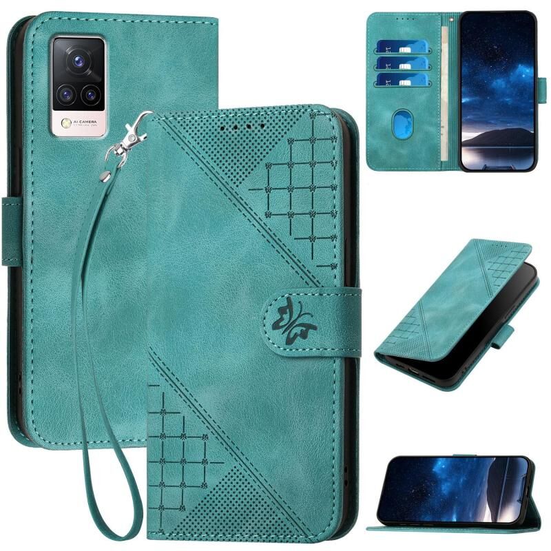 Θήκη τηλεφώνου δερμάτινη με ανάγλυφο σχέδιο πλέγματος και πεταλούδας για vivo S9, με κορδόνι (Ανοιχτό μπλε)