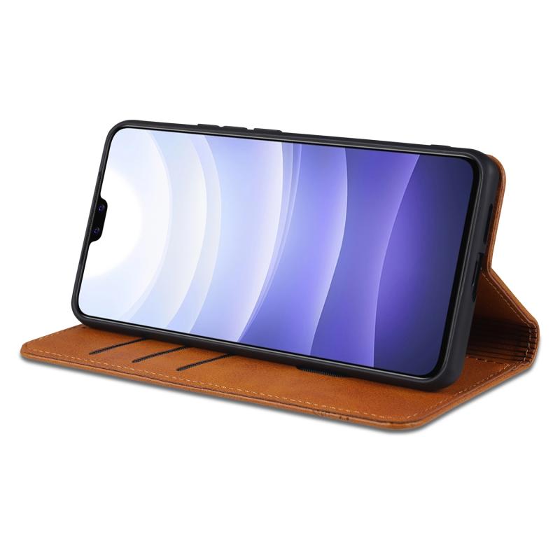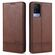 Θήκη δέρματος οριζόντιας αναδίπλωσης με μαγνητικό κλείσιμο και υφή μοσχαριού για vivo S9e AZNS, με θήκες για κάρτες, στήριξη και πορτοφόλι (Σκούρο Πράσινο) (Σκούρο καφέ)