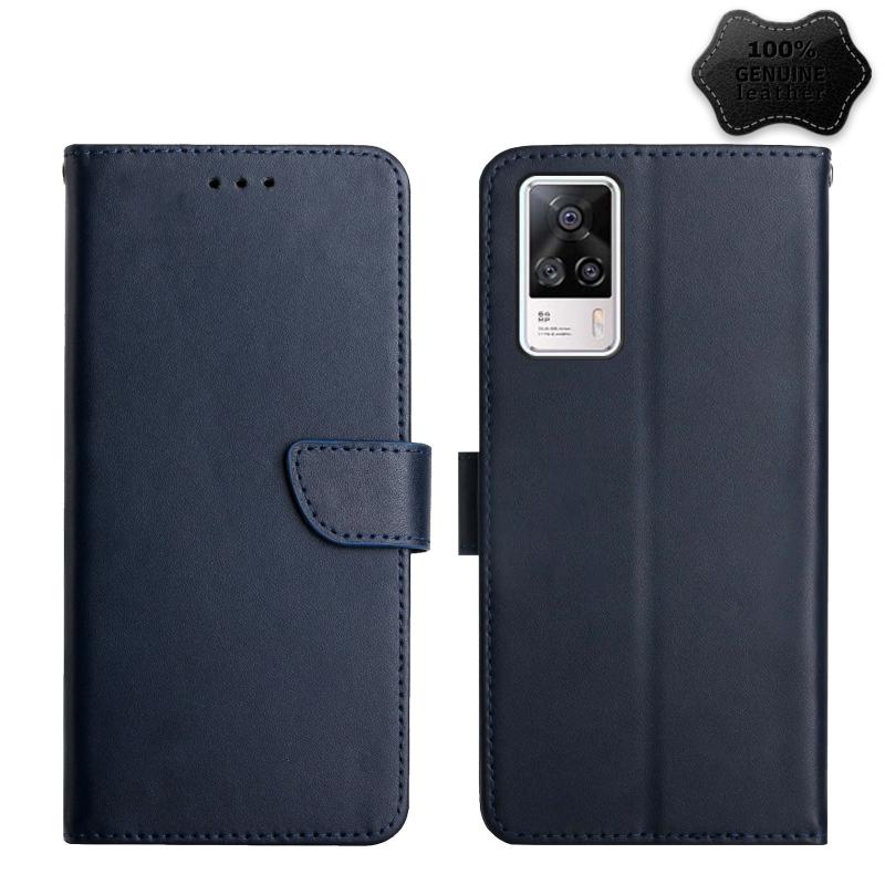 Θήκη για vivo S9e από γνήσιο δέρμα, αντικραδασμική, με μαγνητικό κλείσιμο (Μπλε)