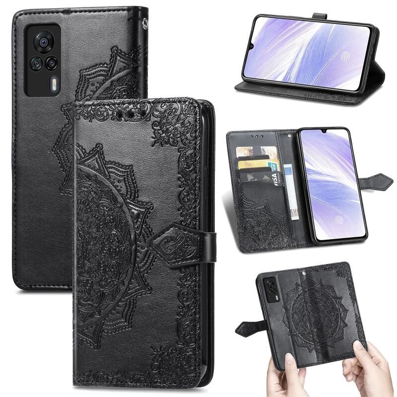 Για Vivo S9e Mandala λουλούδι ανάγλυφο οριζόντια Flip δερμάτινη θήκη με βραχίονα / υποδοχή κάρτας / πορτοφόλι / κορδόνι (μαύρο)