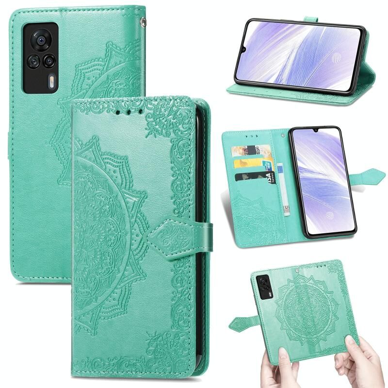 Για Vivo S9e Mandala λουλούδι ανάγλυφο οριζόντια Flip δερμάτινη θήκη με βραχίονα / υποδοχή κάρτας / πορτοφόλι / κορδόνι (πράσινο)