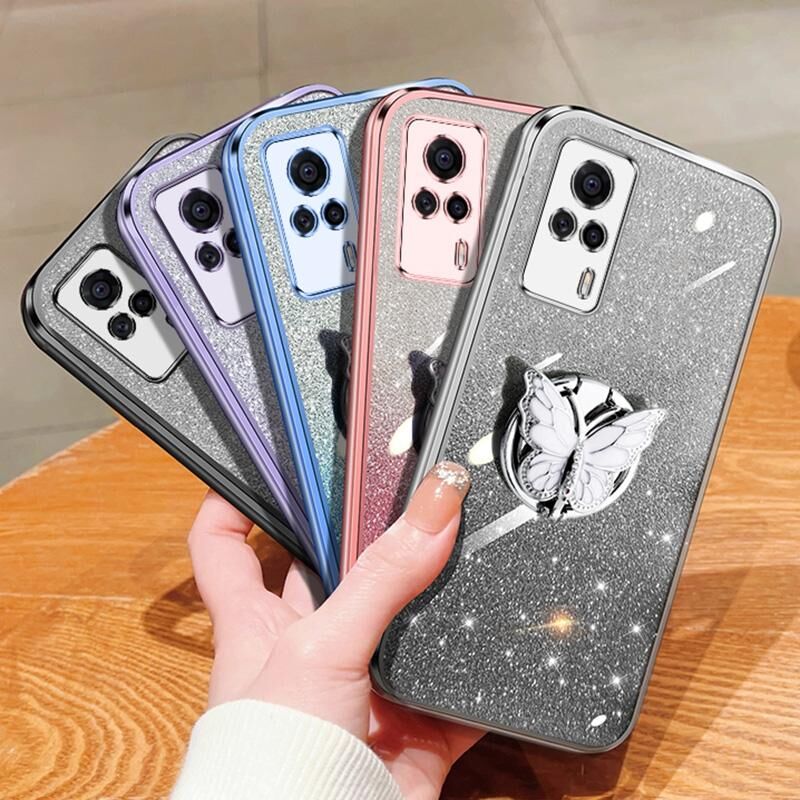 Θήκη τηλεφώνου TPU για vivo S9e με επιμετάλλωση, διαβαθμισμένη λάμψη, σχέδιο πεταλούδας (Ροζ)