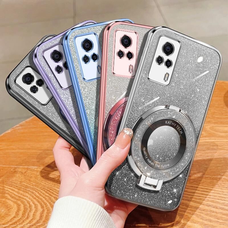 Θήκη τηλεφώνου TPU για vivo S9e με επιμετάλλωση, διαβαθμισμένη λάμψη, στρογγυλή βάση (Μαύρο)