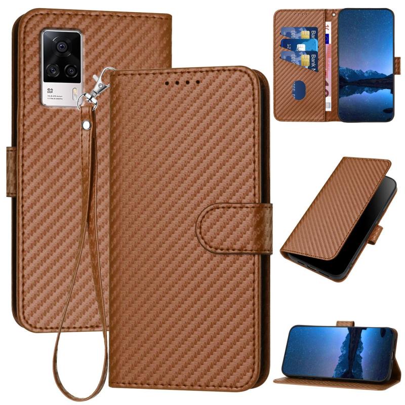 Θήκη τηλεφώνου από δέρμα με αγκράφα από ανθρακονήματα για vivo S9e YX0070 με κορδόνι (Καφέ)