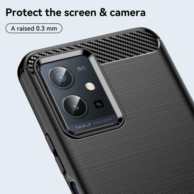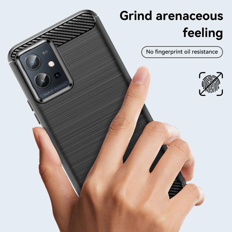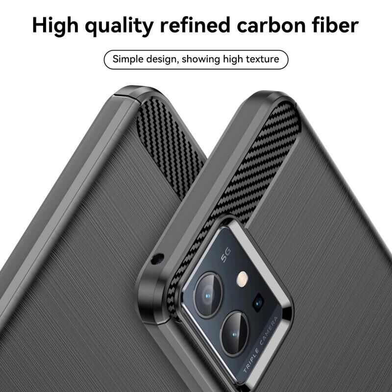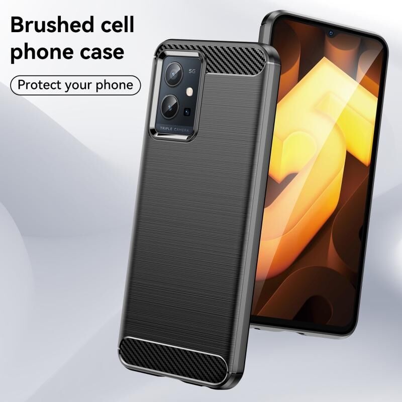 Για vivo T1 5G βουρτσισμένη υφή Carbon Fiber TPU τηλέφωνο υπόθεση (μαύρο)